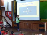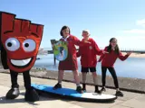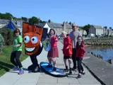 Anna Ogston, from Mosstodloch Primary School designed a 'Road surfing' badge. To celebrate Anna's imaginative design a celebration assembly was held at the school with the Living Streets mascot, Strider. Anna and two friends were also presented with a voucher for a surfing lesson, donated by New Wave Surf school in Lossiemouth.