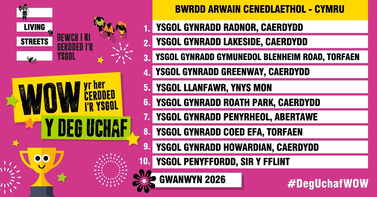 The WOW Top Ten is a simple idea to boost your pupils’ engagement in our walk to school challenge, WOW, and increase your school’s walking rates.